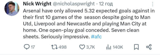 Артета говорил что опережаем график. Лето Зинченко и Жезуса было неожиданно успешным. Саня и Габриэль были очень хороши, возможно даже слишком. Рамсдейл и Уайт сходу прыгнули очень высоко, Салиба стал лучшим в мире, Габриэль тоже, Сака всем доказал что он мужик.