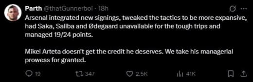 Клуб прогрессирует на всех уровнях, постепенно. Как дурачки ржали с "этапов" Артеты, хотя вам буквально в уши заливали с ведра как оно будет, и так оно и случилось. И что спешить не будут, и что импульсивных покупок не будет, и что все доверяют Артете, и что в проект верят.