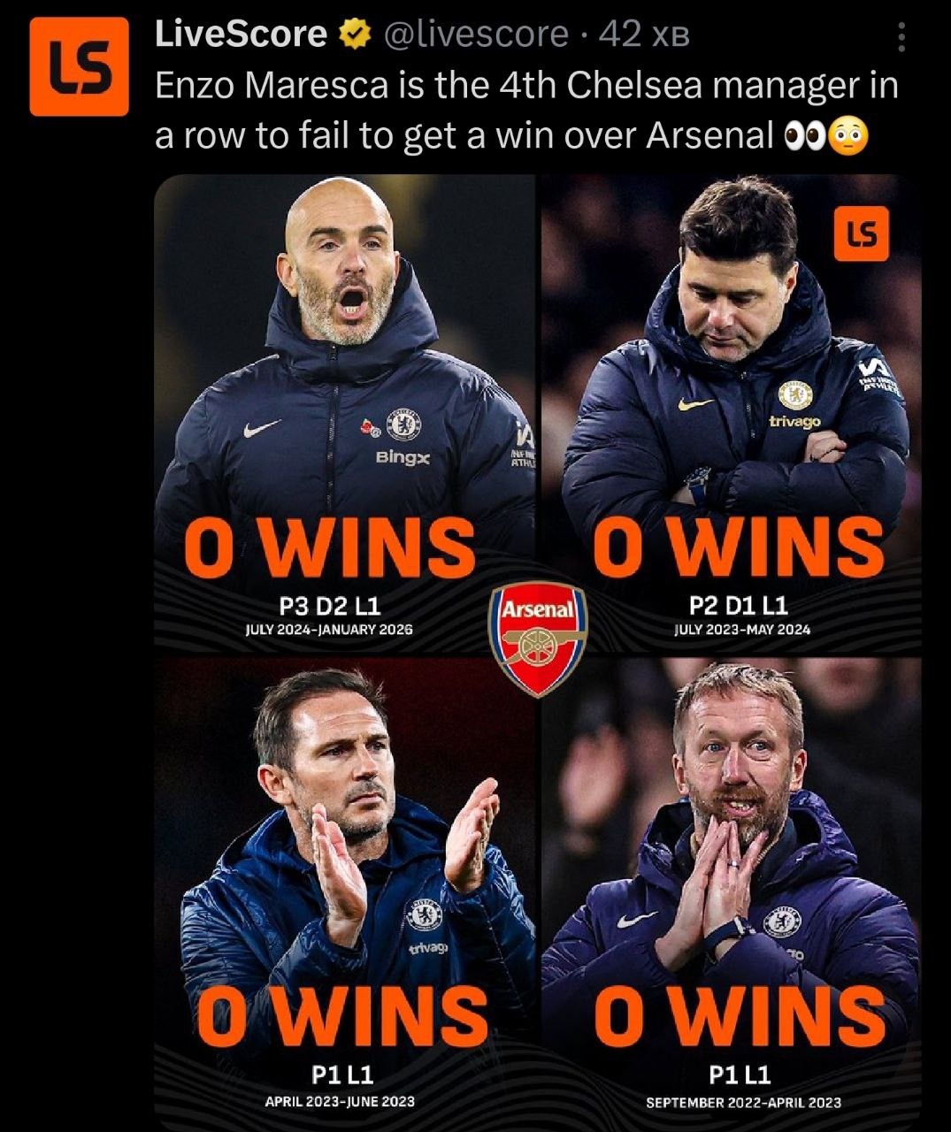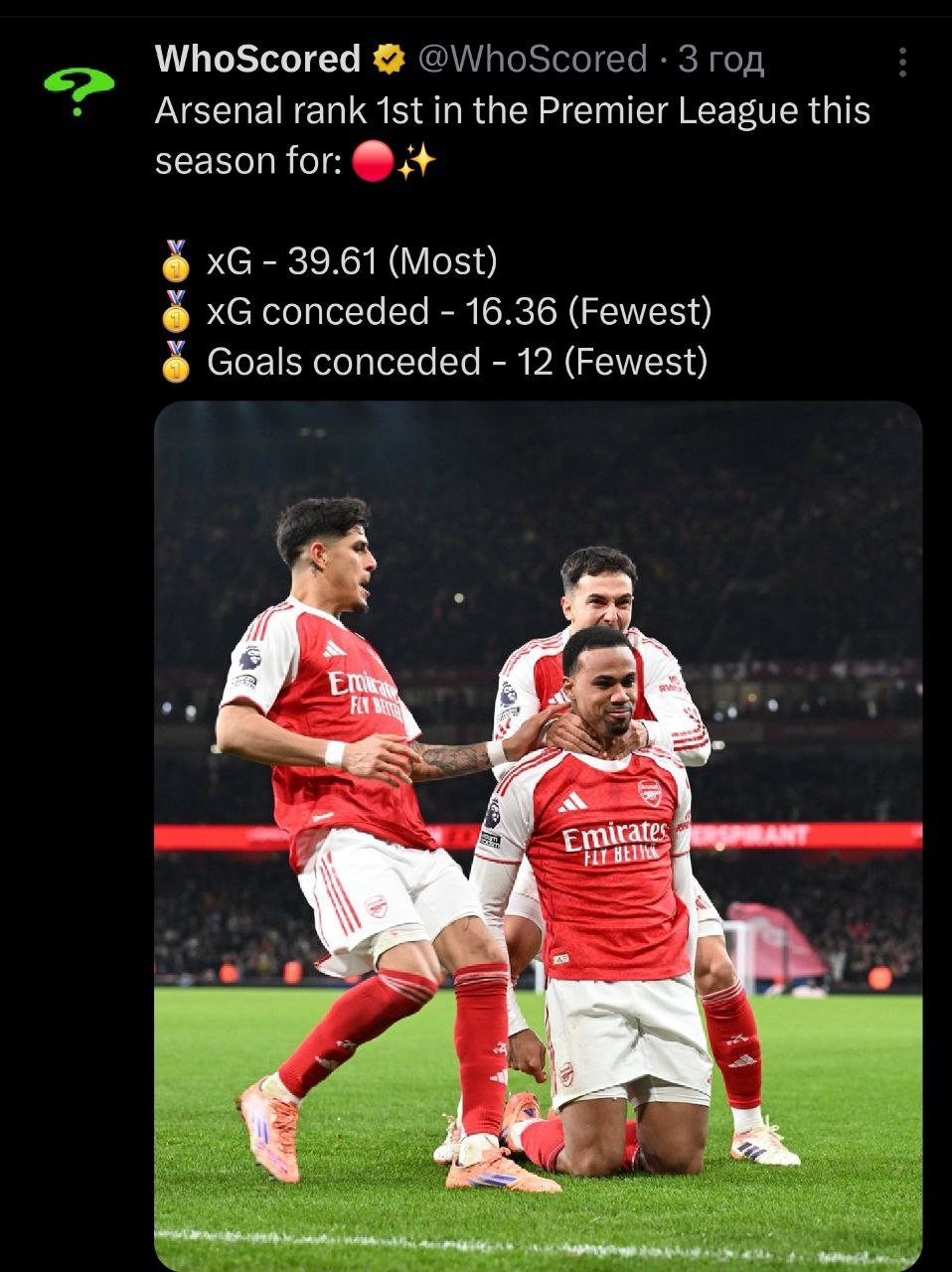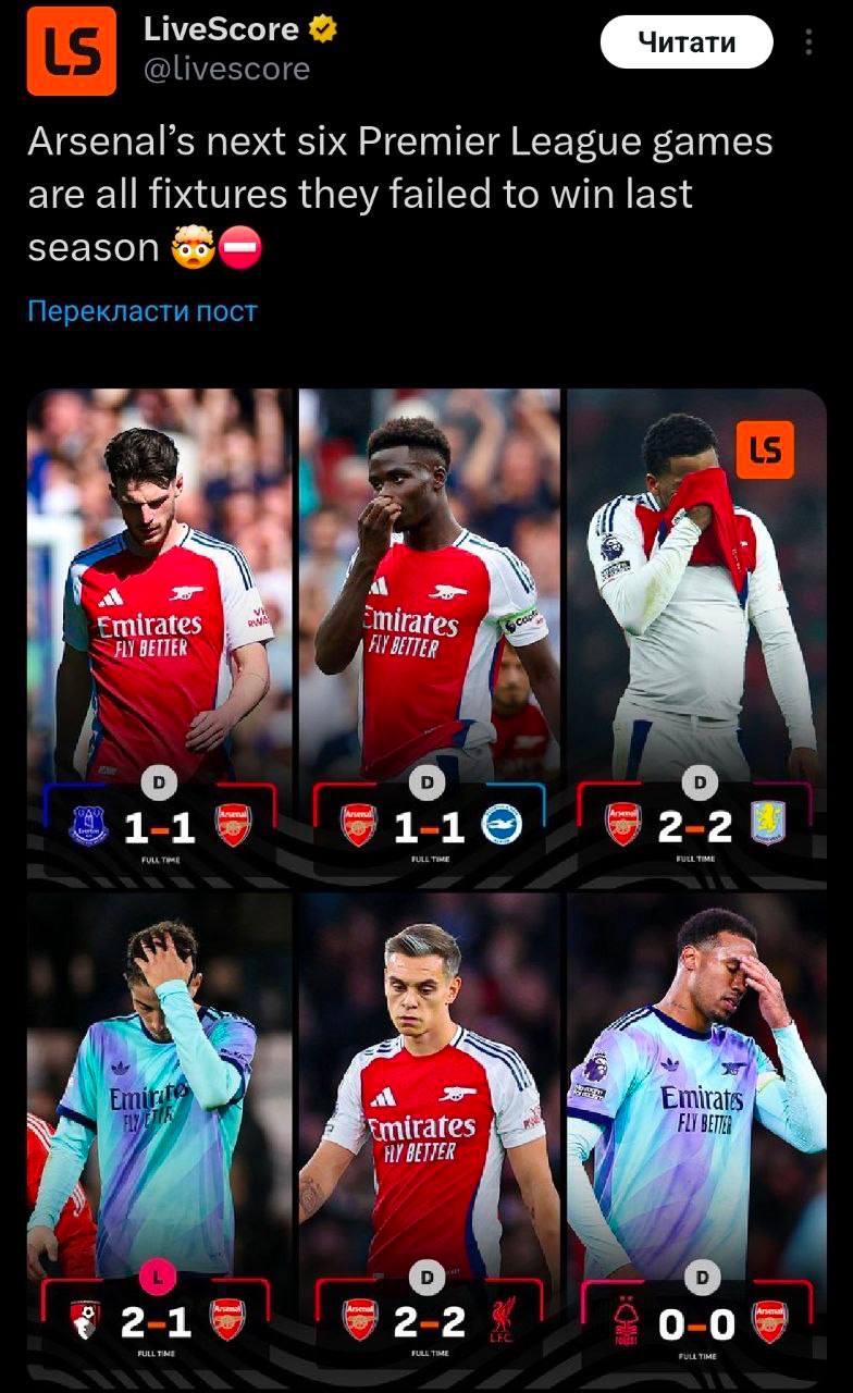 За данный отрезок Арсенал набрал больше 😂