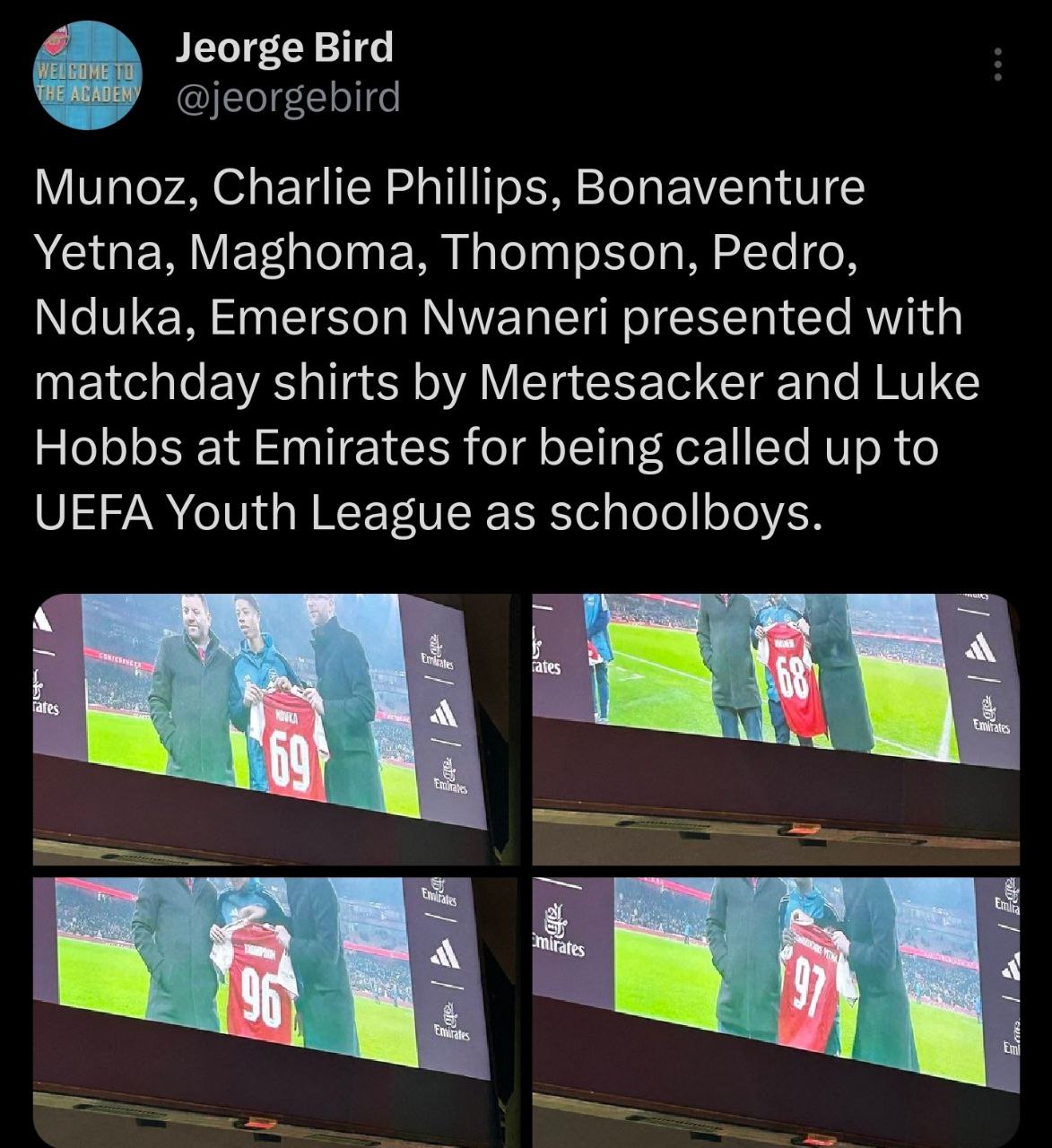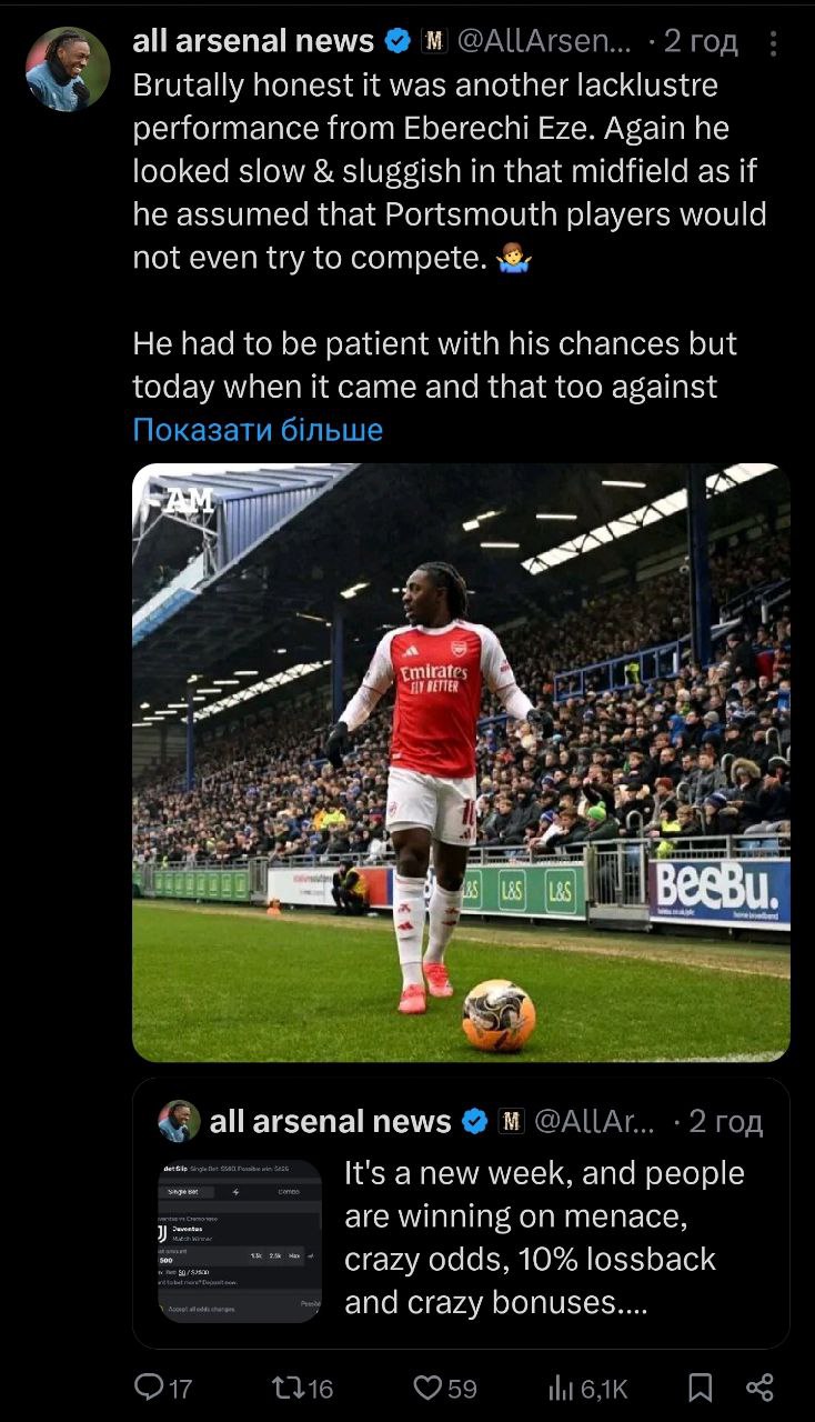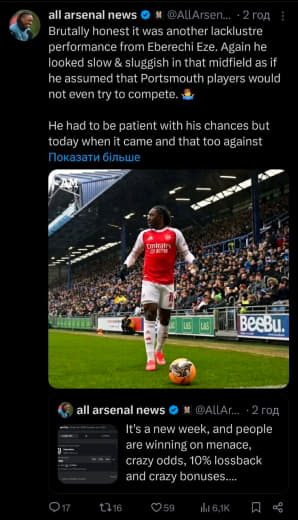 Хотелось бы чтобы Артета и Берта раскопали молодого и перспективного чела который сможет повторить уровень Жезуса. Своих таких нет, а Нкишу задушили лучшие фанаты в Мире.